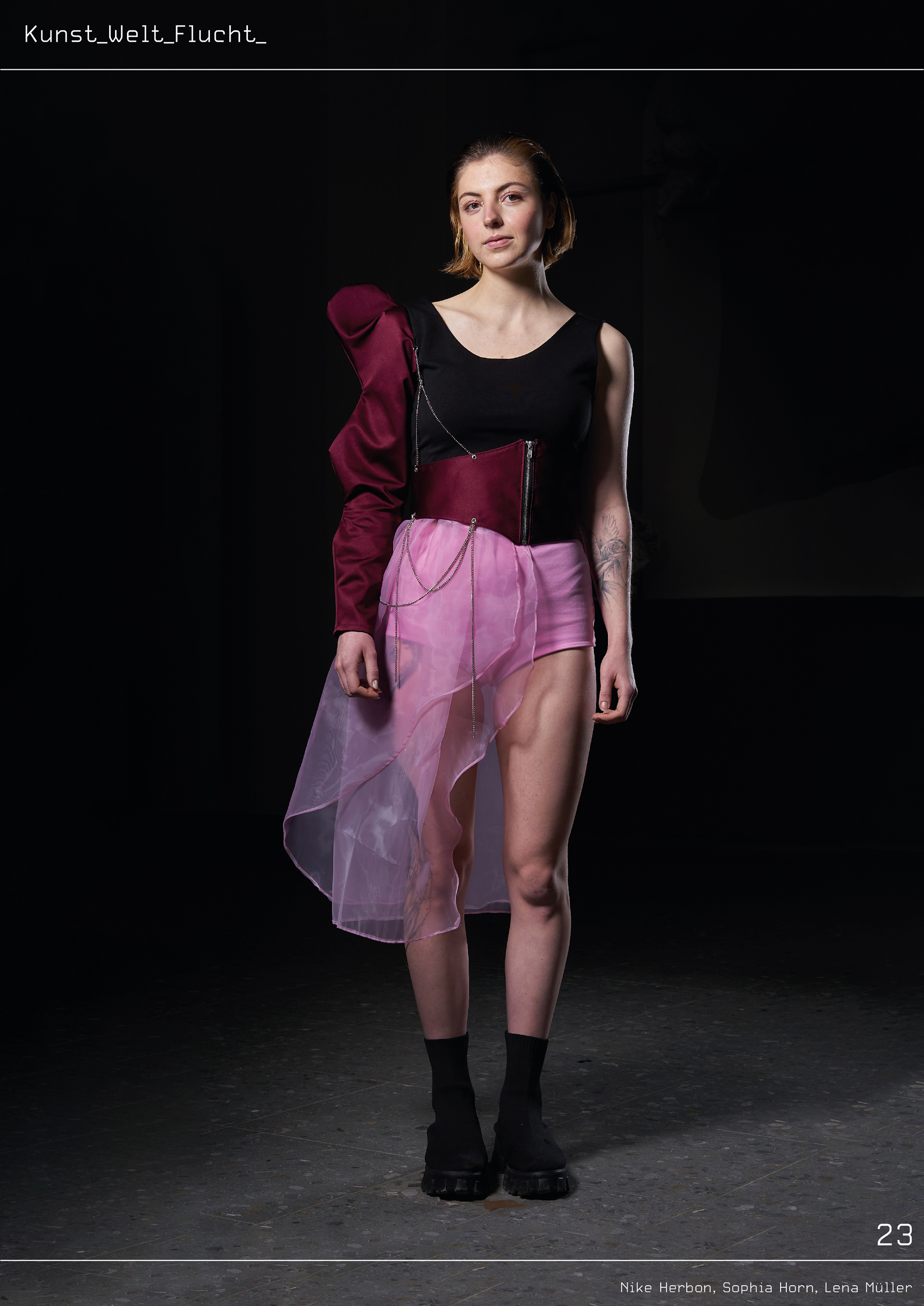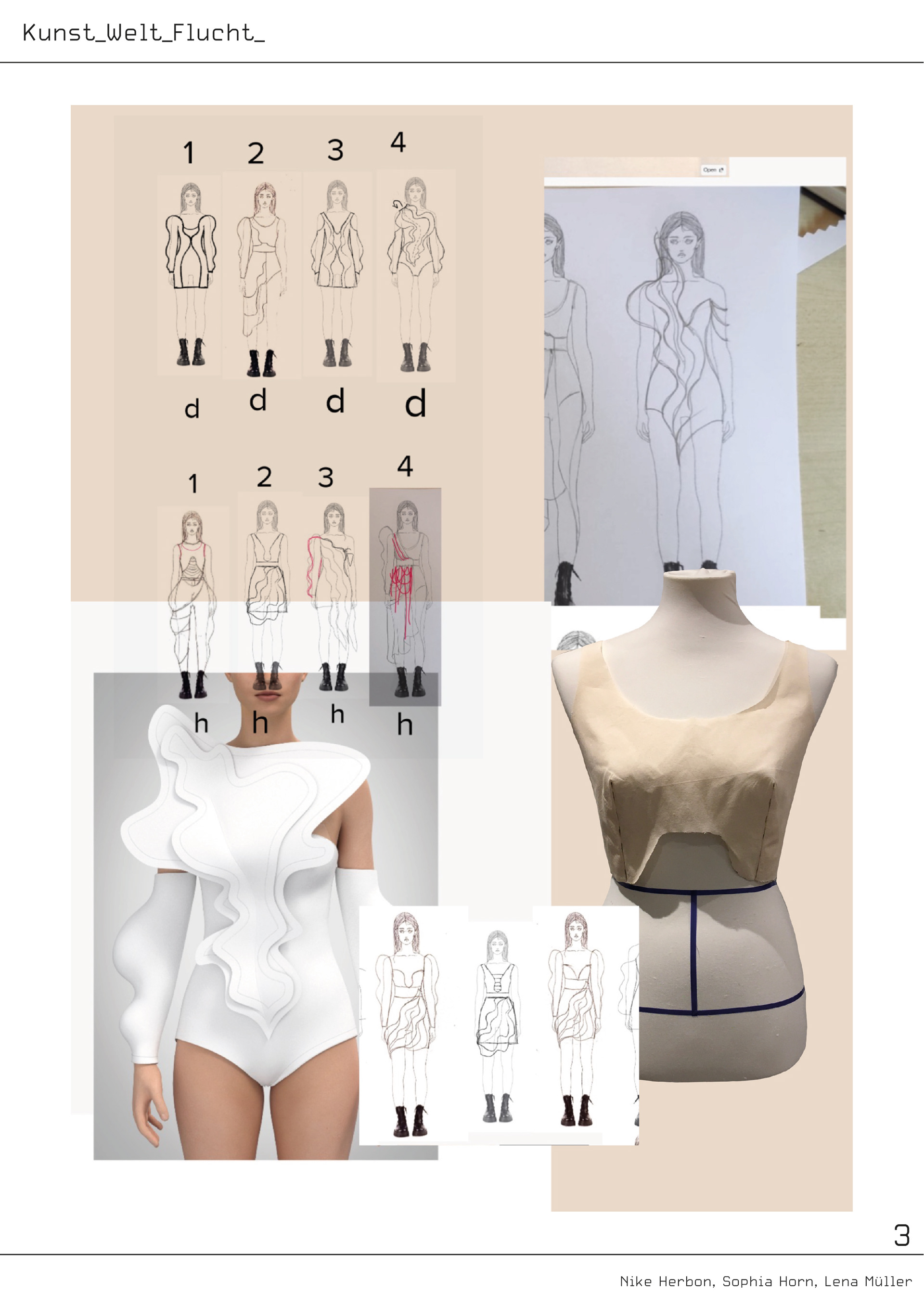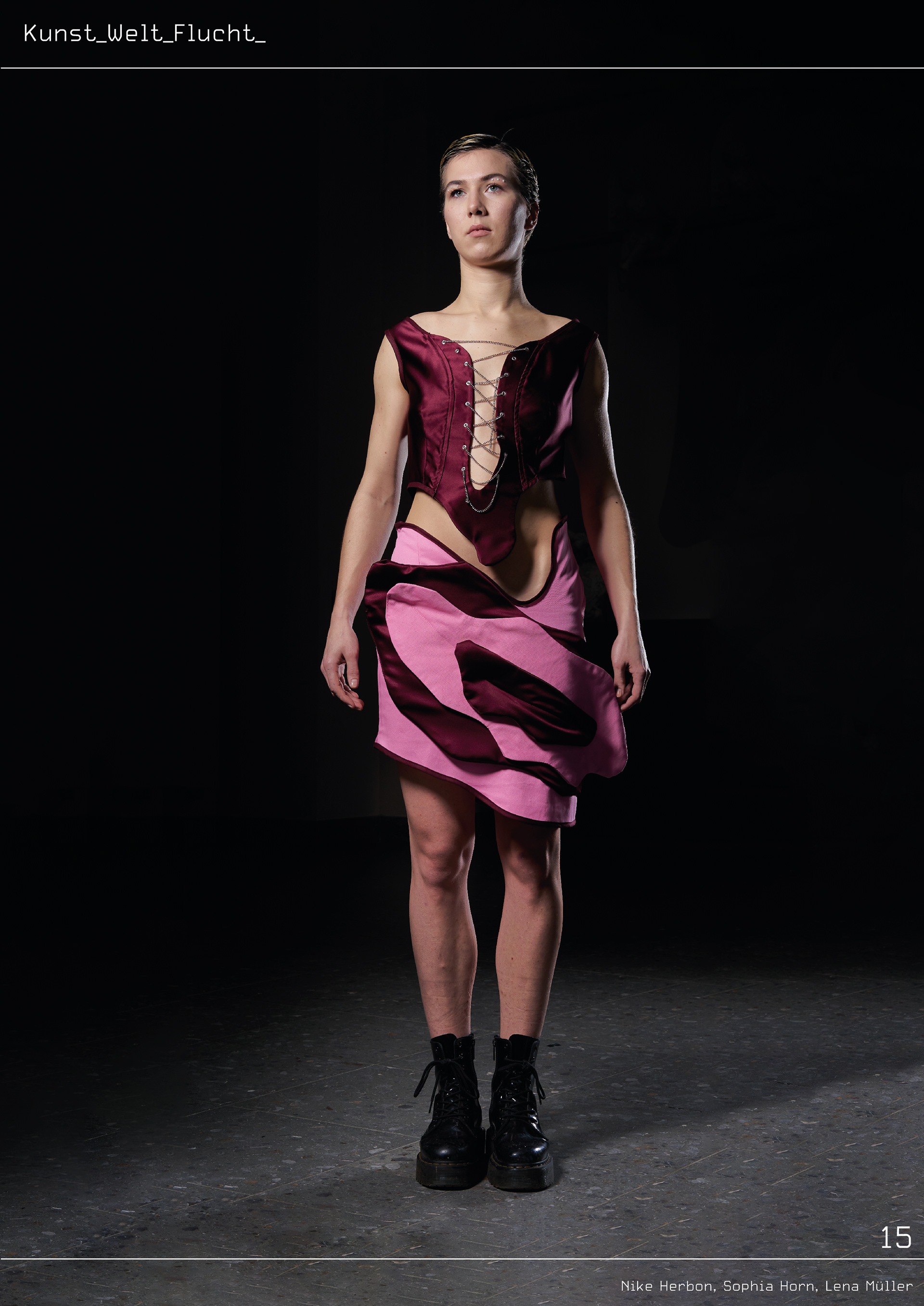 The project was created in collaboration with the Lower Saxony State Museum in Hanover. The collection is inspired by the exhibition "Im Freien" and was part of a fashion show at the museum. The produced film, as well as the creation process of the collection and the models were presented to an audience on the Day of Lower Saxony in the museum. In the future, the Kunst_Welt_Flucht film will be published in the Media Guide of the Lower Saxony State Museum. The designers Nike Herbon, Sophia Horn and Lena Müller would like to thank the museum for the collaboration, Prof. Martina Glomb for the opportunity to realize this project and the entire film team for the incredible support!